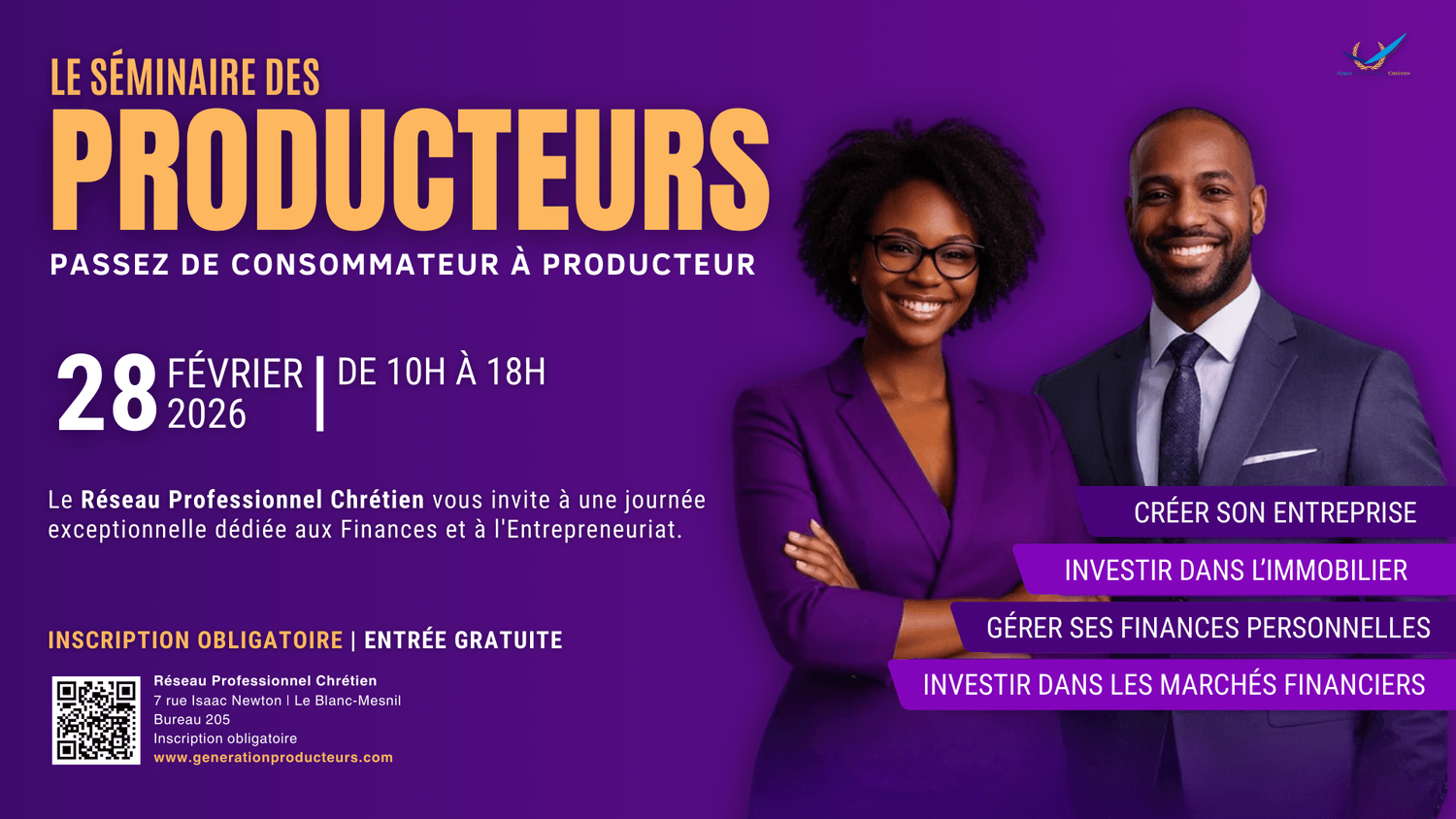 Chaque exposant est sélectionné pour la qualité de son expertise, son professionnalisme et son alignement avec les valeurs du Réseau Professionnel Chrétien.